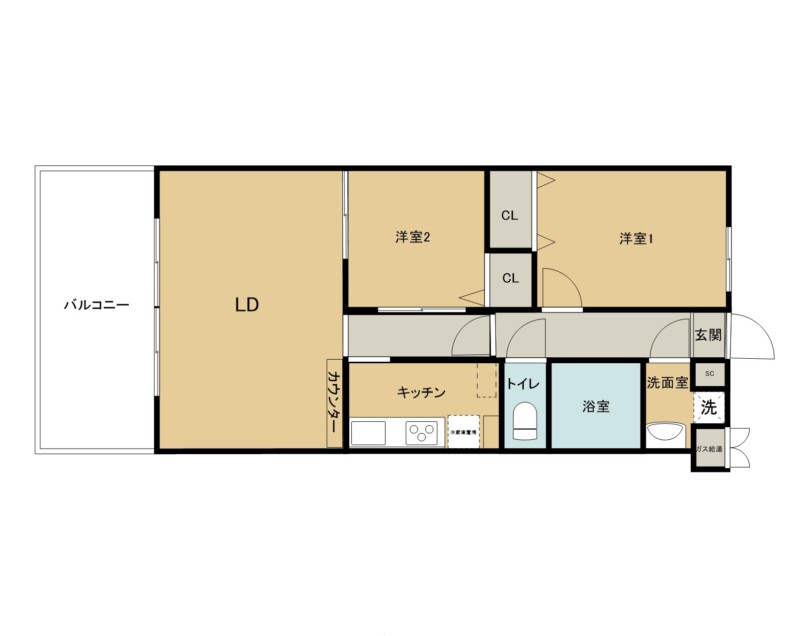 | 間取り | 2LDK (南西) |